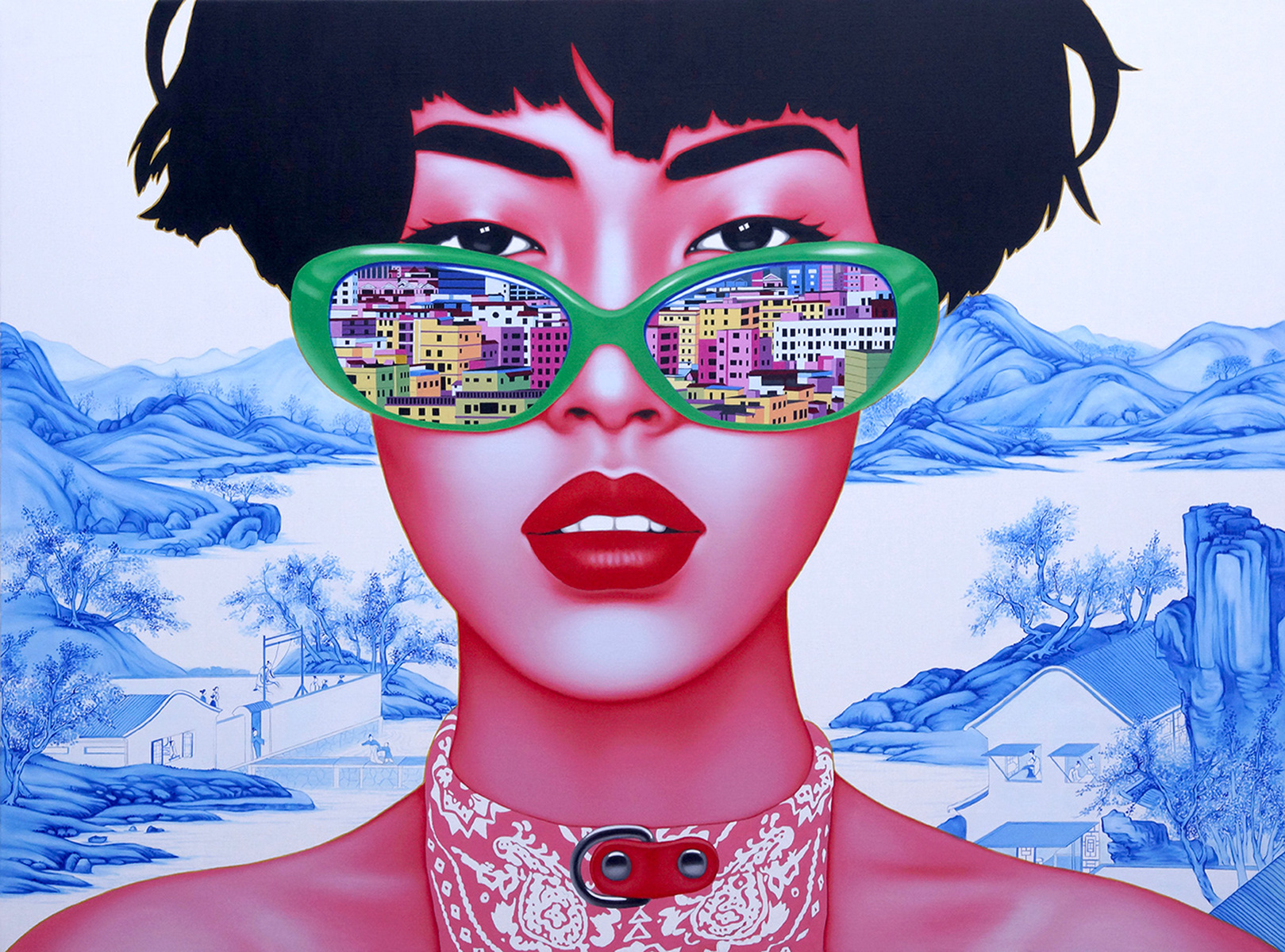 Xu De Qi - Underglaze Blue Girl, 150x200 xm, olio su tela (2019)